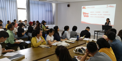 9月25日下午,电子竞技博彩 党总支开展了第一次“不忘初心、牢记使命”主题教育学习会,党总支书记范小春、副院长杨欢耸、郭持华,党总支副书记周微微,全体教职工党员和学生党员悉数到场参加学习会。