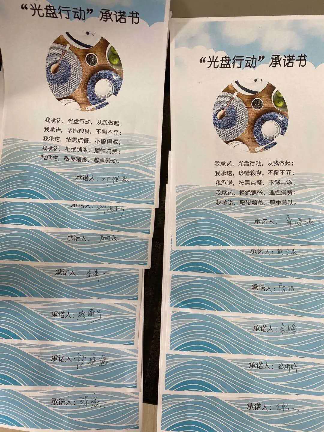 本次党日活动结合学院专业特色,还设置了创意文案分享环节,学生党员们走上讲台,在黑板上写了自己创作的“光盘行动”宣传文案,集思广益,为宣传“光盘行动”贡献自己的力量。随后,朱老师带领全体党员宣读“光盘行动”承诺书,希望党员同志们在今后生活中做到厉行节约,杜绝浪费,养成文明餐桌好习惯。全体党员在承诺书上郑重签下自己的名字,并许下养成节俭餐饮良好习惯的庄严承诺。