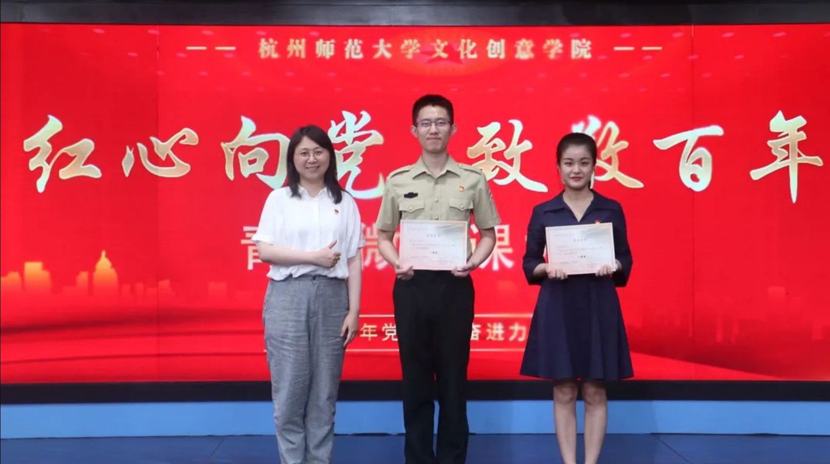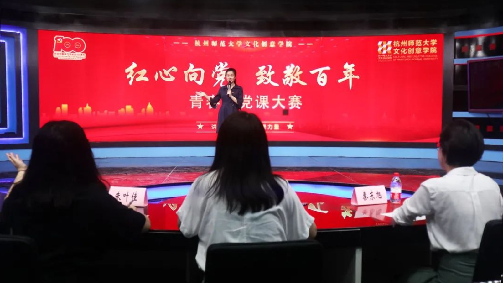 为深入学习贯彻习近平新时代中国特色社会主义思想,庆祝中国共产党成立100周年,引导青年坚定理想信念,厚植爱党爱国情怀,电子竞技博彩 举办青春微党课大赛,青年师生共话百年党史,共聚奋进力量。6月9日下午,杭州师范大学文化创意学院青春微党课大赛决赛在恕园28-401演播厅顺利开展,王斐敏老师、秦东旭老师以及朱叶佳老师担任本次大赛的评委。