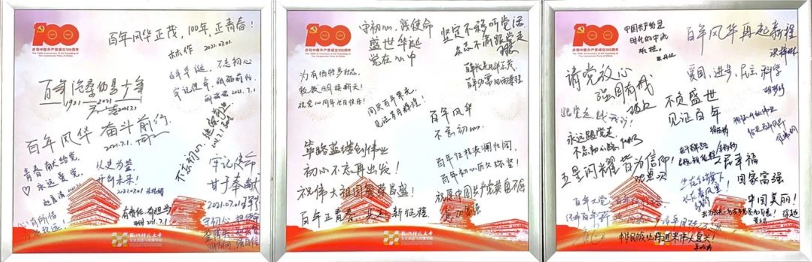 百年风华,奋斗前行。作为一名教师党员,我将满怀对党的教育事业的忠诚和对学生的热爱,充满干劲、扎实细致地开展工作,成长为大学生健康成长的引路人、领航人、摆渡人,引导广大青年人在学思践悟党史中坚定理想信念,在奋发有为中践行初心使命,为实现中华民族伟大复兴努力奋斗。